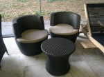 Prachtig drie-delige wickerset ideaal voor op een klein terras,2 club zeteltjes incl kussen +tafeltje met glasplaat